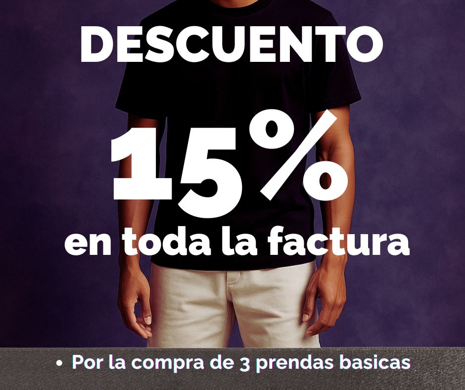 15% de descuento en toda la factura a partir de la tercera prenda, combinalas como quieras.