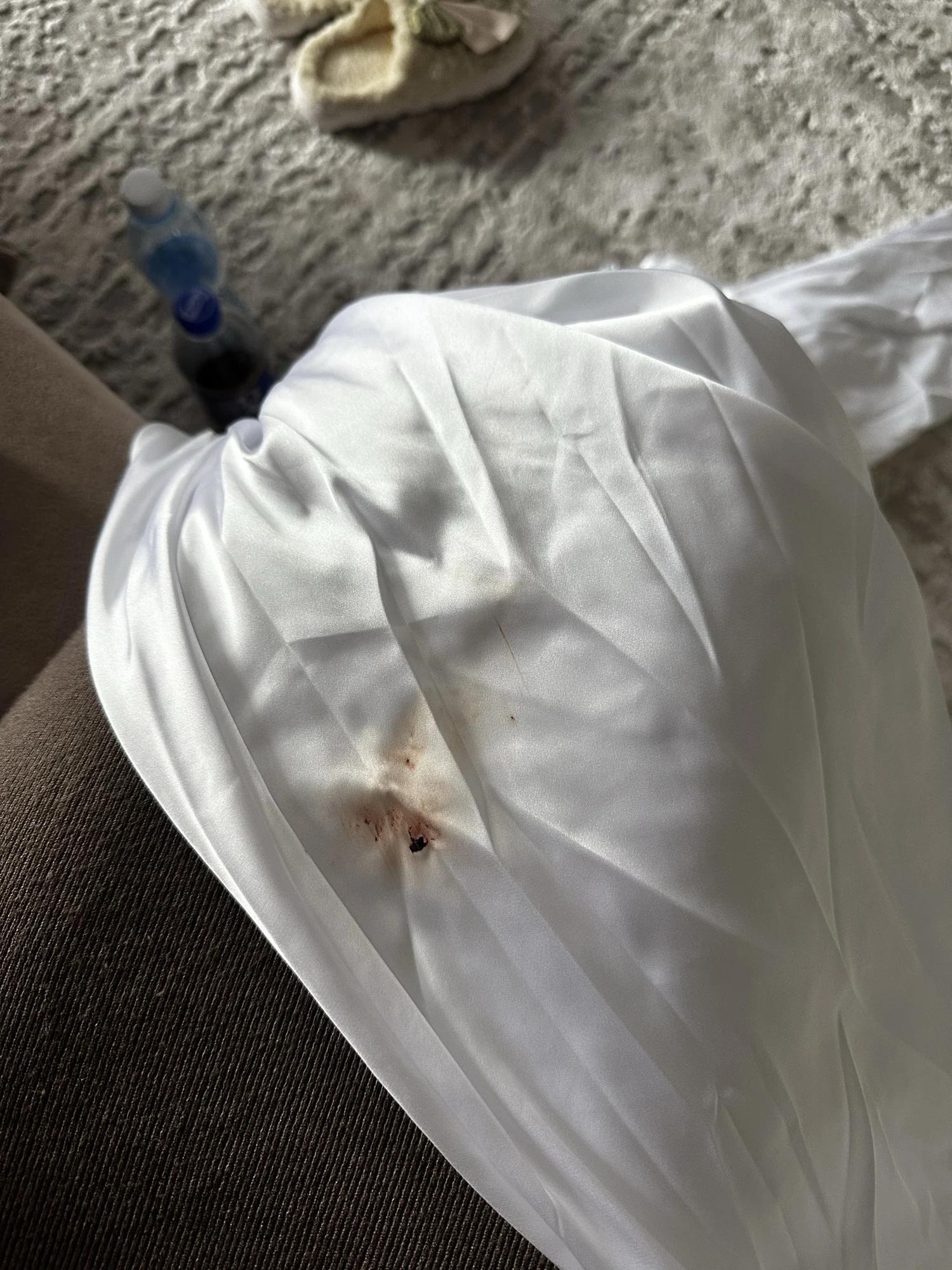 Llegó con una mancha de sangre. 🤯 . Hice un pedido para una sesión de fotos matutina de novia. Sensación muy terrible